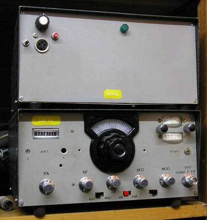 Gebaut wurde das Duoband-Gerät Ende der 60-iger Jahre, wahrscheinlich von DK1TI und ist dann in den Besitz von DC9UL übergegangen. Im Empfänger wird ein MB-103 Nachsetzer in Verbindung UE2-Mosfet-Konverter von Semco verwendet. Im Sender sitzt ein Nachbau einer kommerziellen Standard-Schaltung mit QQE 03/12 in der PA. Angesteuert wird das Gerät durch einen FM-modulierbaren 24 MHz-Transistor-VFO nach DC6NT/DL8UX oder wahlweise durch einen Quarzkanal. Ein NF-Modulator mit 2xEL84 sorgt für die nötige Amplitutenmodulation. Nachträglich erhielt das Gerät einen FM-Demodulator. Der 10m-Sendezweig wurde entfernt, um dem Gerät, was überwiegend auf 2m betrieben wurde, den Platz für einen Einbau-Lautsprecher bereit zu stellen. Ebenso wich die EM84-Abstimmanzeigeröhre, die als AM-Modulationskontrolle und Abstimmhilfe diente, dem nachträglich eingebauten FM-Diskriminator. |